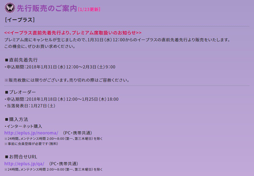 ネオロマンスイベント 遙か6感謝祭 チケット情報 一般販売の情報を更新いたしました また プレミアム席 にキャンセルが生じましたので 1月31日 水 12時からのイープラス先着先行より販売をいたします この機会にどうぞお買い求めください